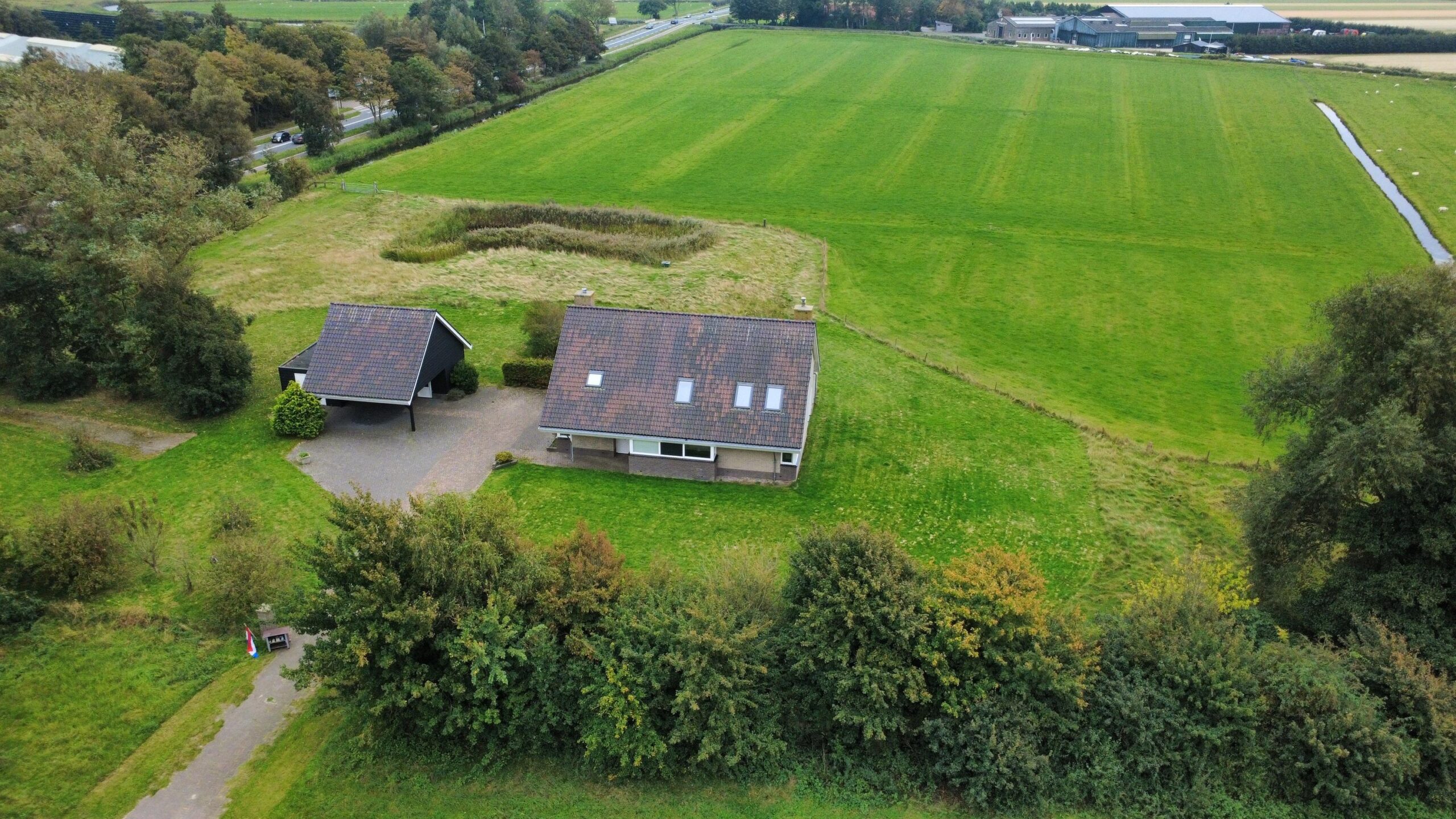 Het woonhuis is in 2009 nieuw gebouwd, biedt de mogelijkheid tot gelijkvloers wonen en heeft een flink bijgebouw met garage en schuur.