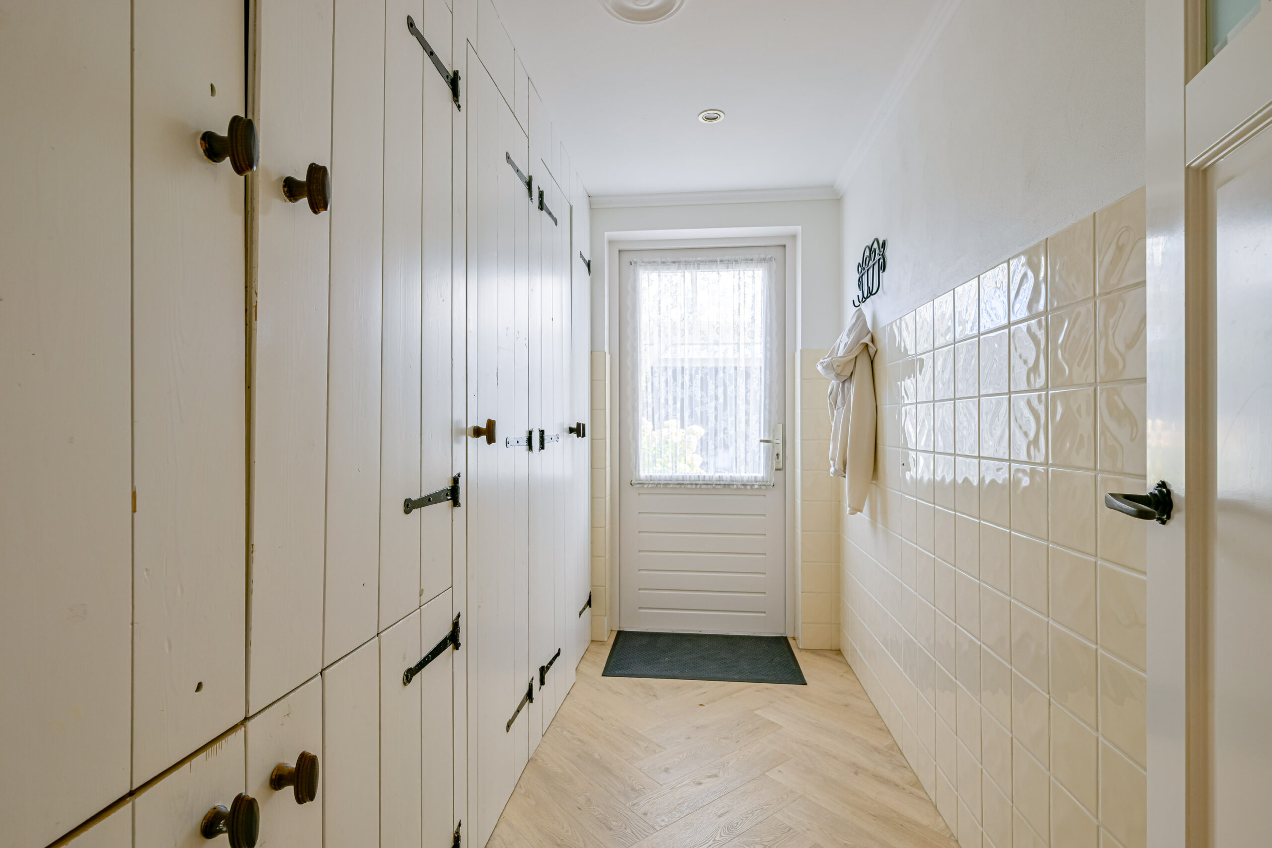 De praktische bijkeuken biedt ruimte voor echt veel berging met handige kasten en opstelling voor wassen/drogen.
