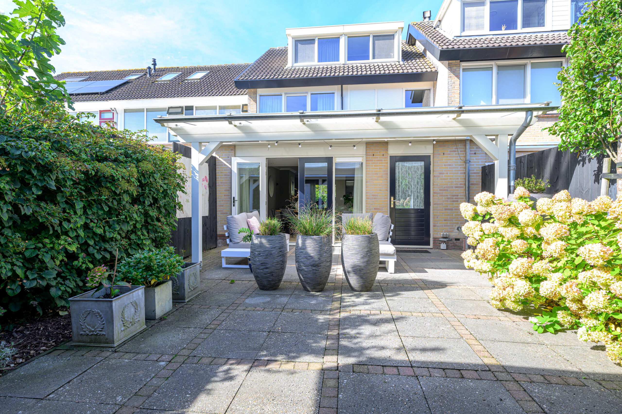 In de achtertuin is het heerlijk toeven, onder de overkapping of in de veranda. Een deur naar de achtergelegen steeg maakt achterom komen eenvoudig, lopend of met de fiets. De ligging aan de voorzijde aan een autovrij pleintje met speeltoestellen maken de wijk erg kindvriendelijk.