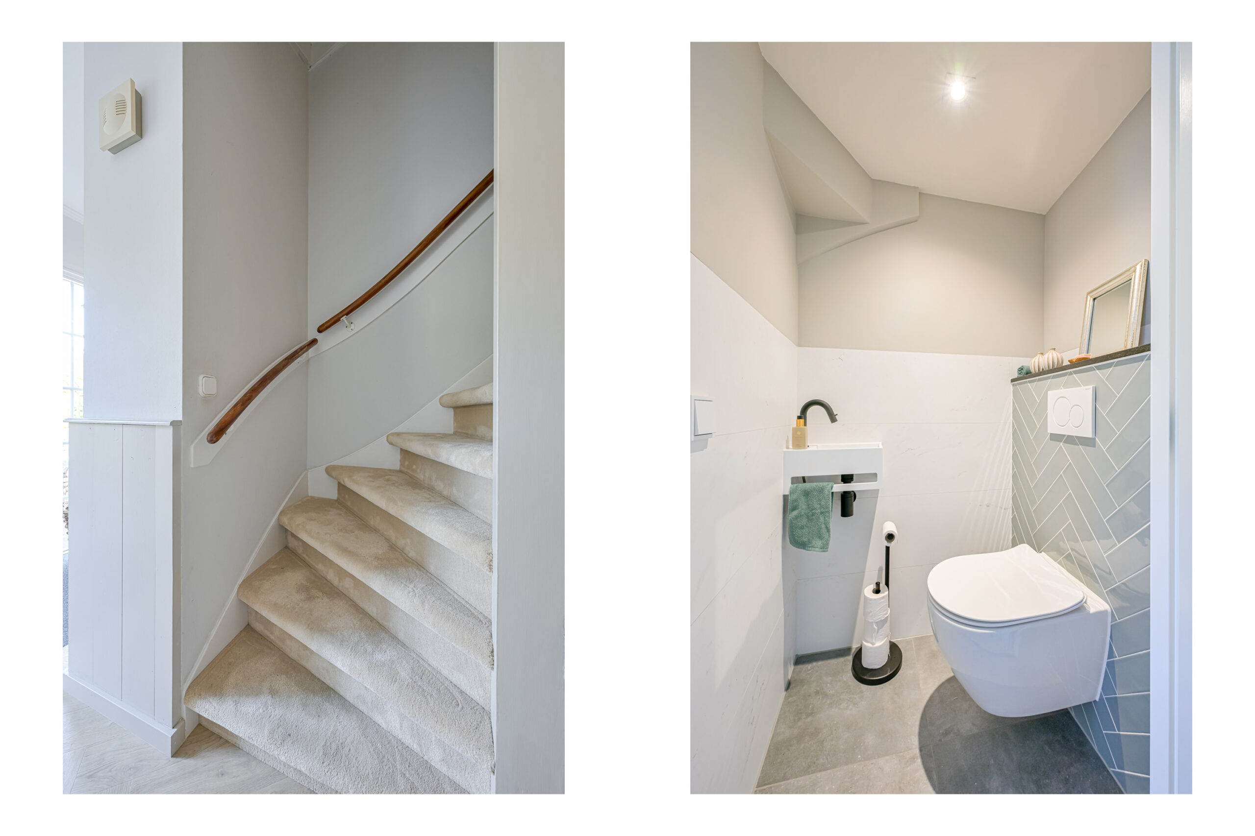 Indeling begane grond: Vanuit de hal met modern toilet, vernieuwde meterkast, bergkast en de trapopgang naar de 1e verdieping, stapt u de sfeervolle woonkamer in. De begane grond is volledig voorzien van vloerverwarming en er is een sfeervolle haard.